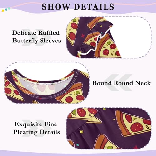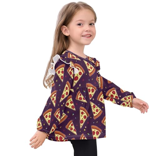 Pizza Navy Background Girls Shirts Cotton Long Sleeve Ruffle Toddler Tee Tops 4