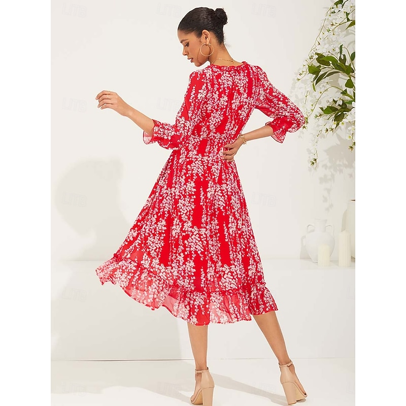 More information about Women's Maxi Dress Swing Dress Elegant Cute Stylish Split Sleeve Vacation Regular Fit Floral Long Sleeve V Neck Red Summer Spring