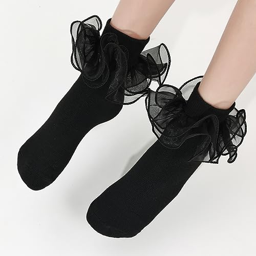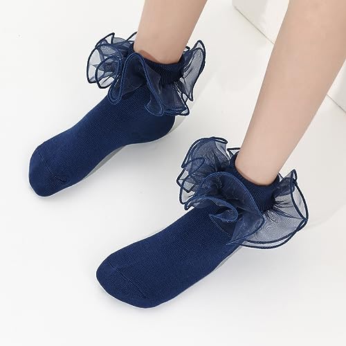Baby Girls Cotton Double Lace Turn Cuff Socks with Big Ruffles for Infant Toddlers and Kids 5