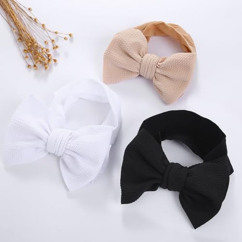 KIDOCHEESE Big Bows for Baby Girls Stretchy Nylon Headbands Oversized Hair Bows Large Hair Bands Hair Accessories for Newborn Infants Toddlers Kids 3