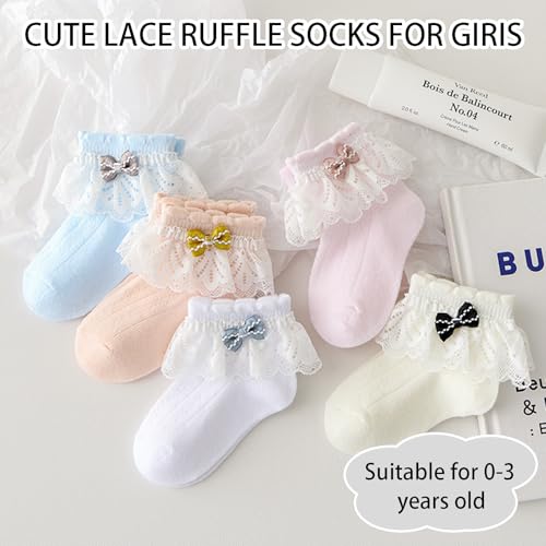 3/5 Pairs Baby Girls Socks - Ruffle Lace Princess Frilly Knit Cotton Newborn Socks 5