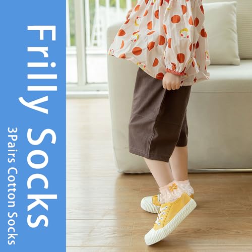3/5 Pairs Baby Girls Socks - Ruffle Lace Princess Frilly Knit Cotton Newborn Socks 3