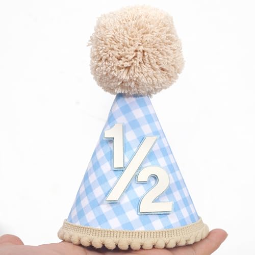 More information about Boho Half Birthday Hat - Gingham Style1/2 Birthday Decorations, Plaid Birthday Hat, Boho 6 Months Birthday Party Hat