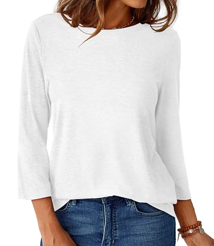 Womens Tops 3/4 Sleeve Shirts Round Neck Casual Blouses Basic Loose Fit Pullover Tshirts 3