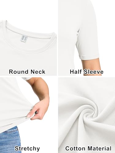 • Soft Cotton Material: This half sleeve t shirts for women is made of 91.8% cotton and 8.2% spandex, which is soft, breathable and not see through. Please choose one size smaller according to the size chart for a tight fit.