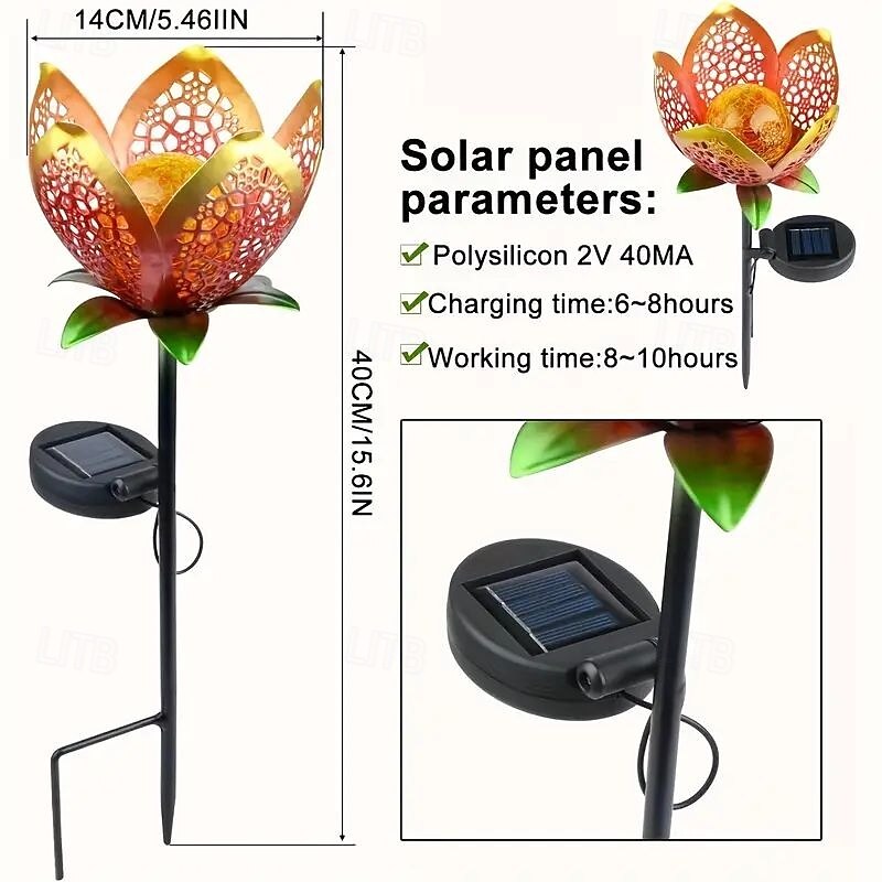 1/2 Pcs Solar Iron Lotus Garden Light Outdoor Waterproof Lawn Light Courtyard Walkway Backyard Holiday Landscape Decoration 8