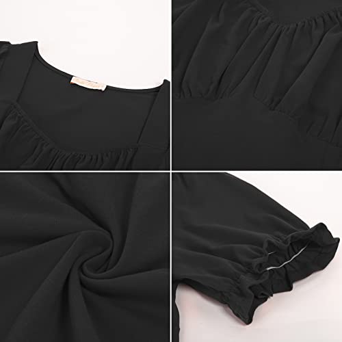 • FEATURE: This retro short-sleeved shirt; square collar; puff sleeves; high elasticity; ruffles on the cuffs; chest tuck; slim fit silhouette design; soft and comfortable cotton fabric