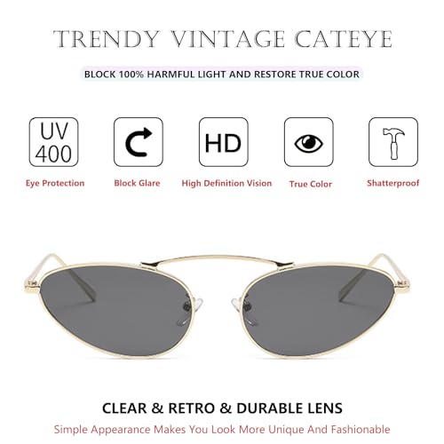 Fashion Retro Narrow Cat Eye Sunglasses for Women Trendy Fun Small Metal Frame Sunnies UV400 Protection Glasses