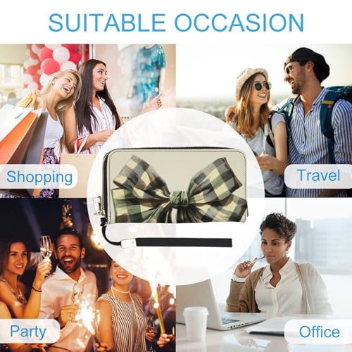 Light Brown Green Black Checkered Bow PU Leather Clutch Long Bifold Wallet, Coin Purse Credit Pass Case, Durable Card-Holder Money Storage for Women Men 5