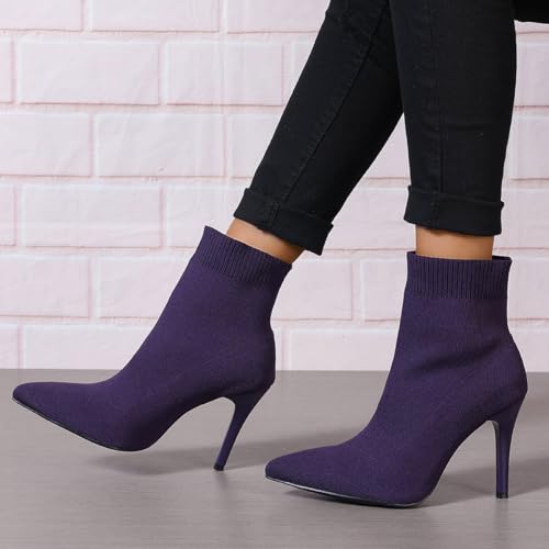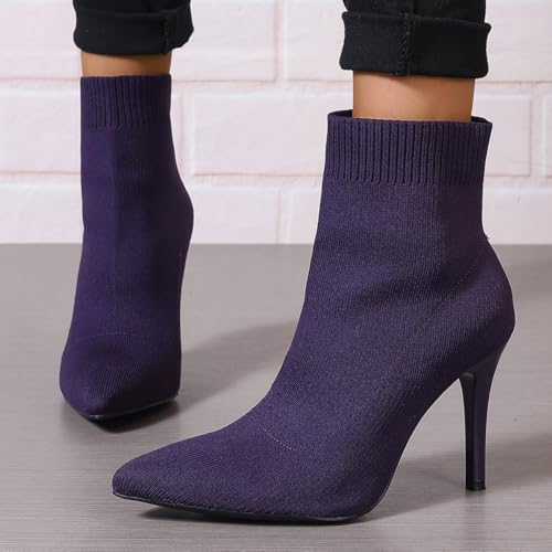 Ankle Boots for Women Stiletto Heels Pointed Toe Sock Booties plush Dressy Stretchy Short Boot, US Size 6-12