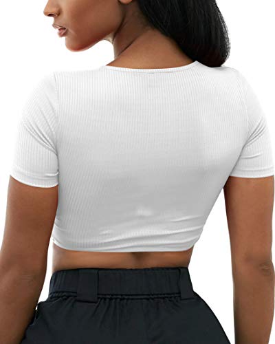 HOT ! Mizoci Women's Sexy Knot Front Crop Top Deep V Neck Short Sleeve Basic Casual T Shirt