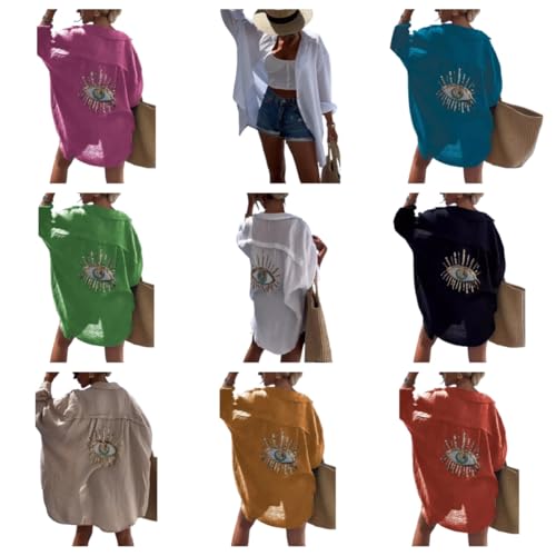 GGOOB Oversized Sequin Evil Eye Shirts Long Sleeve Linen Button Down Shirt Women Beach Cover Ups Summer 2024 7