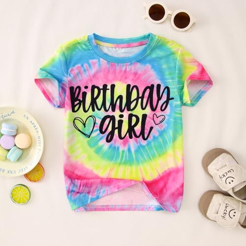 • Package: 1Pcs Birthday short sleeve tee tops for toddler kids girls. Surprise the special birthday girl in your life with this tie-dye birthday girl t-shirt! Perfect for her special day. Support machine wash, hang to dry, do not bleach.