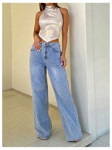 • Features: shiny top for women, sexy crop top for party club night, backless and sleeveless, high halter neck, draped front, asymmetrical hem, solid color, y2k top