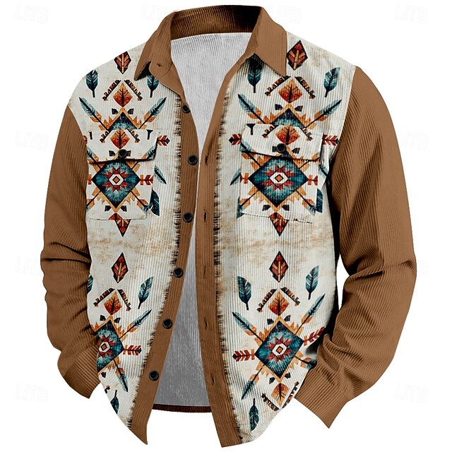 More information about Men's Cowboy Corduroy Shirt Shirt Jacket Overshirt Long Sleeve Vintage Western Style Outdoor Dailywear Casual Fall & Winter Turndown Collared Shirts 3D Print Buttons 2 Pockets 1pc Black Blue Brown