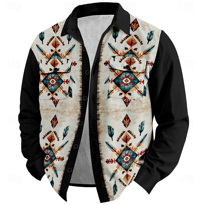 Men's Cowboy Corduroy Shirt Shirt Jacket Overshirt Long Sleeve Vintage Western Style Outdoor Dailywear Casual Fall & Winter Turndown Collared Shirts 3D Print Buttons 2 Pockets 1pc Black Blue Brown 3