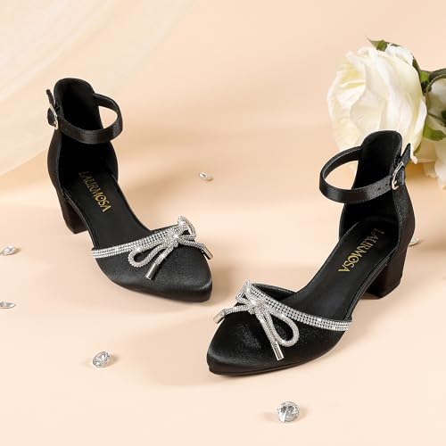 Girls Sandals Closed Toe High Heels Pointed Toe Ankle Strap Pumps Flower Girl Dressy Shoes in Wedding Party Cute Bowknot Chunky Block Heeled for Little Big Kids