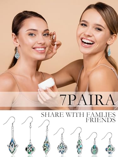HOT ! 7 Pairs Celtic Knot Earrings Boho Fashion Drop Dangle Earrings for Women Knot Silver Teardrop Hoop Vintage Statement Jewelry (Ocean)