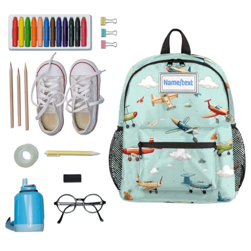 Custom Toddler Backpack for Boy Girl Personalized Kids Backpack with Name, Cartoon Airplanes Pattern Preschool Bag with Chest Strap, Nursery Rucksack for Kindergarten Children Kids Gift 1