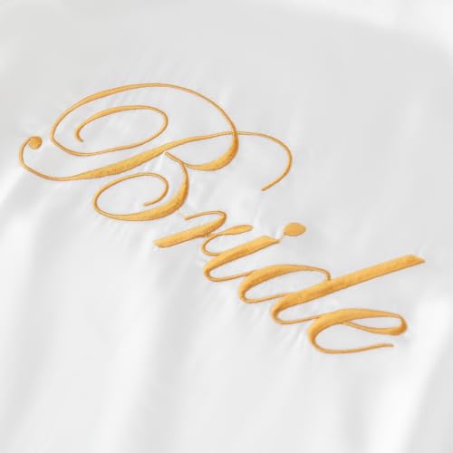• Elegant Wedding Essential: Luxurious silky satin robe with delicate lace trim and intricate embroidery, perfect for brides, bridesmaids, and wedding party members.