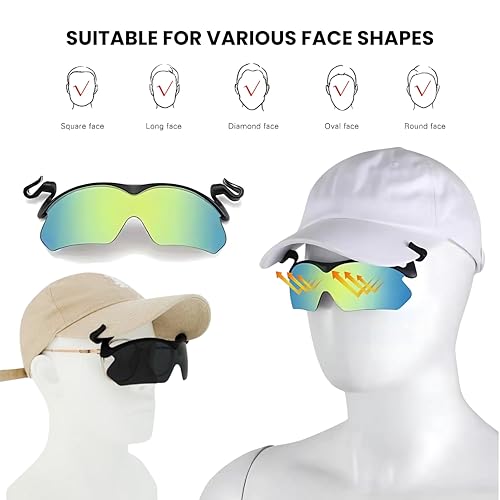 • 🧢 Comfortable Wear: Our clip on sunglasses for men attach directly to your cap brim, giving you a lightweight, no-slip fit that’s ideal for long hours outdoors, whether you're hiking, biking, or fishing.