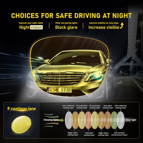 • 【PROTECT YOUR EYES】Enjoy crystal-clear vision and maximum eye protection with our night vision glasses.the UV protection shields your eyes from harmful ultraviolet rays, ensuring a safer and more comfortable driving experience both day and night. Perfect for drivers seeking the ultimate in visual performance and eye safety.