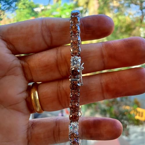 15 Carat Round Shape Brown and White Diamond Halo Wedding Engagement Tennis Bracelet In 14K White Gold Plated 5
