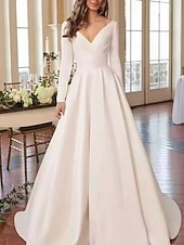 More information about Hall Formal Boho Wedding Dresses Ball Gown V Neck Long Sleeve Chapel Train Jersey Bridal Suits Bridal Gowns With Ruched