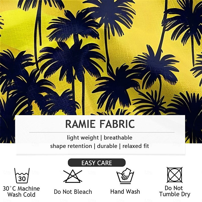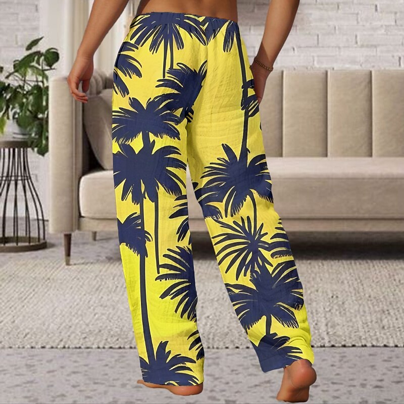 More information about Men's Palm Tree Pants Trousers Mid Waist Drawstring Elastic Waist Hawaiian Casual Outdoor Holiday Beach Wear Straight Leg Trousers Summer Spring Fall 3D Print Yellow Pink Blue