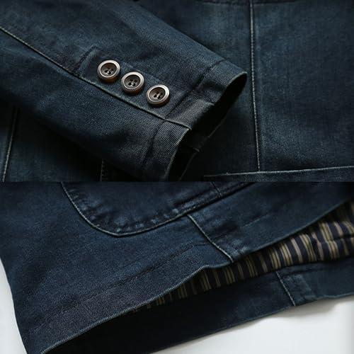 Men's Casual Denim Suit Jacket Classic Notched Collar 3 Button Jean Coat Vintage Skinny Pocket Blazer Outwear 4