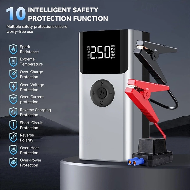 More information about 4 In 1 10000mAh Car Jump Starter PowerBank 150PSI Air Pump 12V Battery Booster for 10.0L Gasoline and 8.0L Diesel Engines