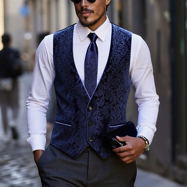 More information about Men's Vest Waistcoat Formal Performance Wedding Spring Fall Adjustable Paisley Single Breasted V Neck Black Blue Vest