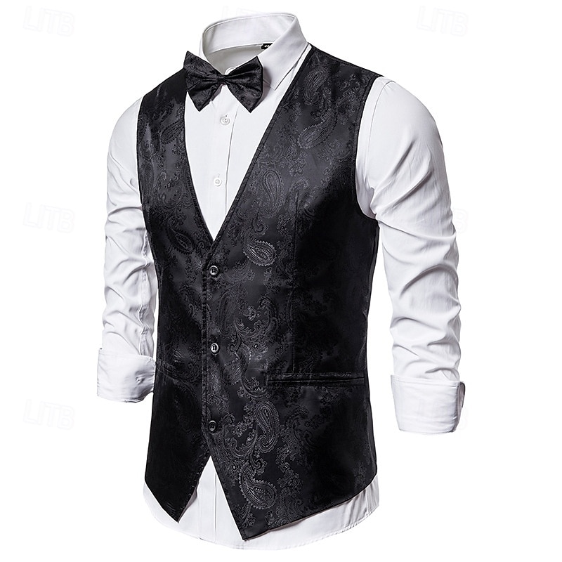 HOT ! Men's Vest Waistcoat Formal Performance Wedding Spring Fall Adjustable Paisley Single Breasted V Neck Black Blue Vest