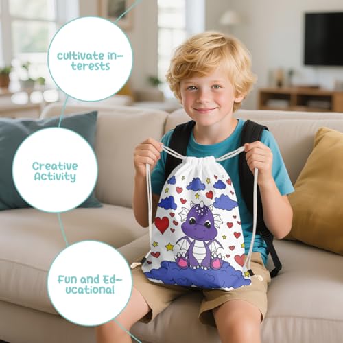 Dragon Coloring Bag for Kids Drawstring Backpack DIY Painting Art Back to School Supplies Pouch Birthday Party Favors 7