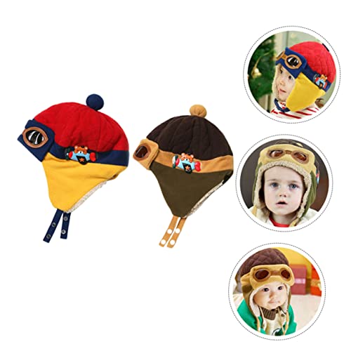 PartyKindom 2Pcs Thickened Cotton Pilot Hats Warm Fleece Lined Winter Caps for Portable Comfortable Boys Cold Weather Wear Resistant Accessories 2