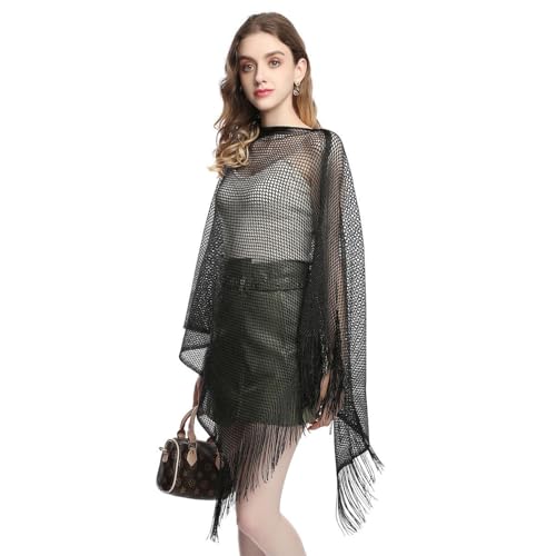 More information about Women's Knit Shawl Wrap Metallic Fringe Poncho Sheer Fishnet Cape Top Soft Long Loose Swing Summer Beach Capelet