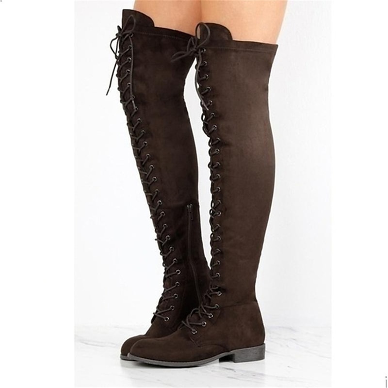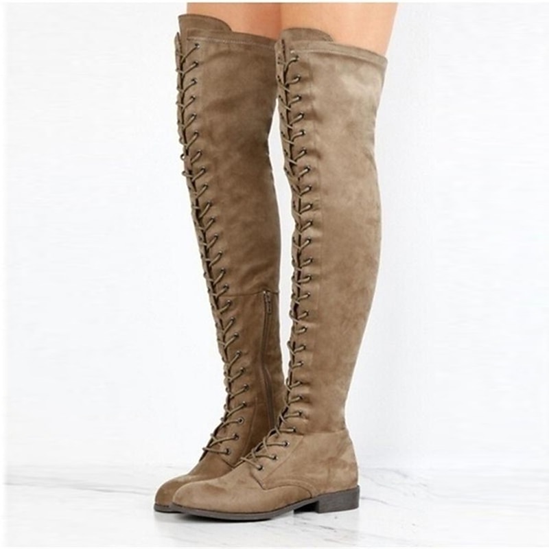 Women's Over-the-Knee Lace-Up Suede Boots with Flat Heel – Stylish and Comfortable for Casual and Winter Wear 9