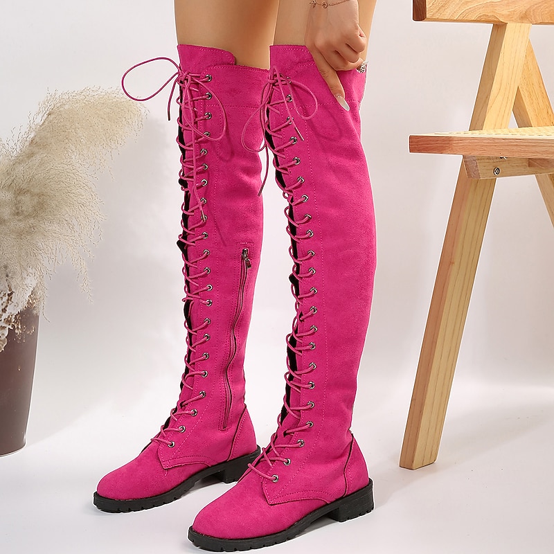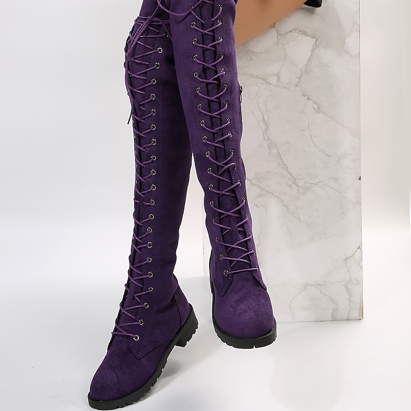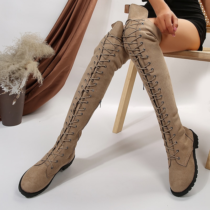 Women's Over-the-Knee Lace-Up Suede Boots with Flat Heel – Stylish and Comfortable for Casual and Winter Wear 25
