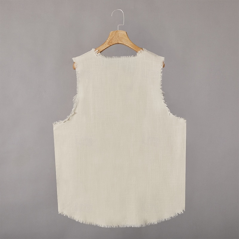 More information about Men's Linen Shirt Tank Top Vest Undershirt Sleeveless V Neck Summer Plain Fashion Bohemian Classic Street Casual Sports Beige Top Tee for Men