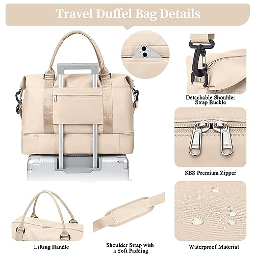 SYCNB Weekender Bags for Women,Personal Item Travel Bag with Shoes Compartment,Overnight Travel Duffel Bag,Gym Bag,Beige 4