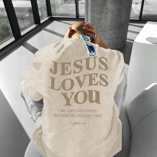Christian Jesus Loves You Shirts for Men Religious Oversized Graphic Tees Jesus Faith Acid Wash T Shirt God Top 4