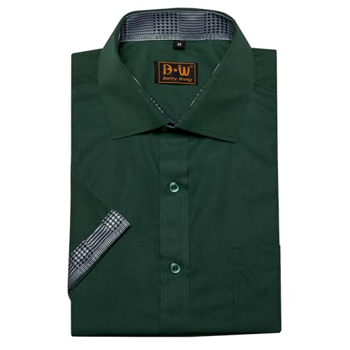 Barry.Wang Men's Short Sleeve Dress Shirts Casual Summer Button Down Business Formal Polyester Shirt Regular Wedding Party 1