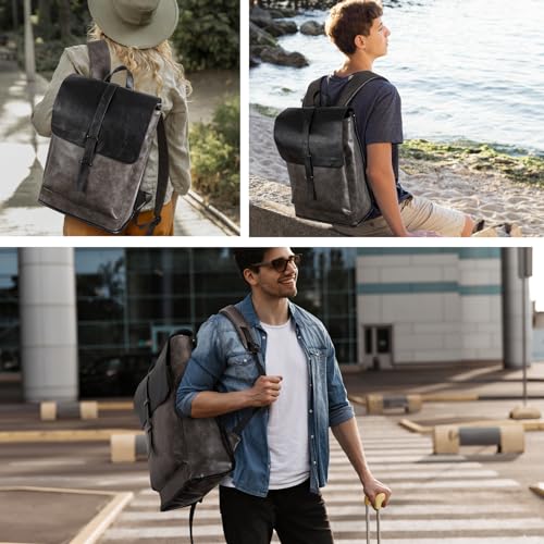HOT ! Leather Backpack Vintage Laptop Backpack for Women Men Faux Leather Backpack Purse for Travel Daypack