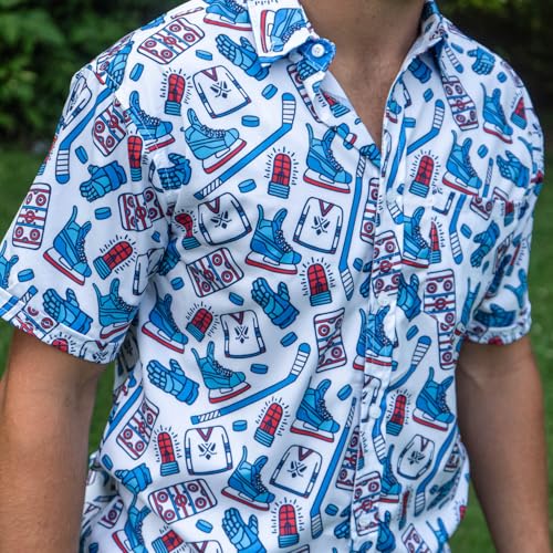 • SHOW OFF YOUR HOCKEY PRIDE in our hockey short sleeve button down featuring a one-of-a-kind bold hockey design. This performance-fit shirt looks great paired with dress pants or your favorite everyday bottoms.