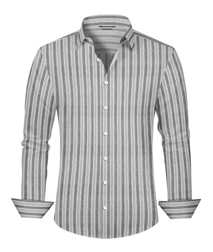 Lzzidou Men's Striped Button Down Shirt Cotton Blend Long Sleeve Collared Dress Shirts for Business Work Office Casual Date 1