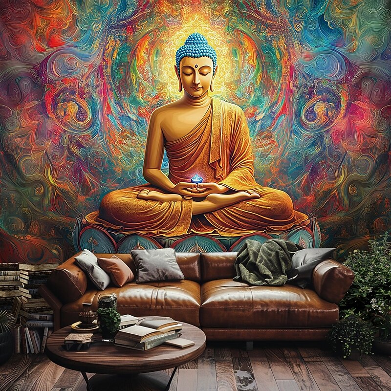 Mandala Bohemian Hanging Tapestry Buddha Wall Art Large Tapestry Mural Decor Photograph Backdrop Blanket Curtain Home Bedroom Living Room Decoration 6