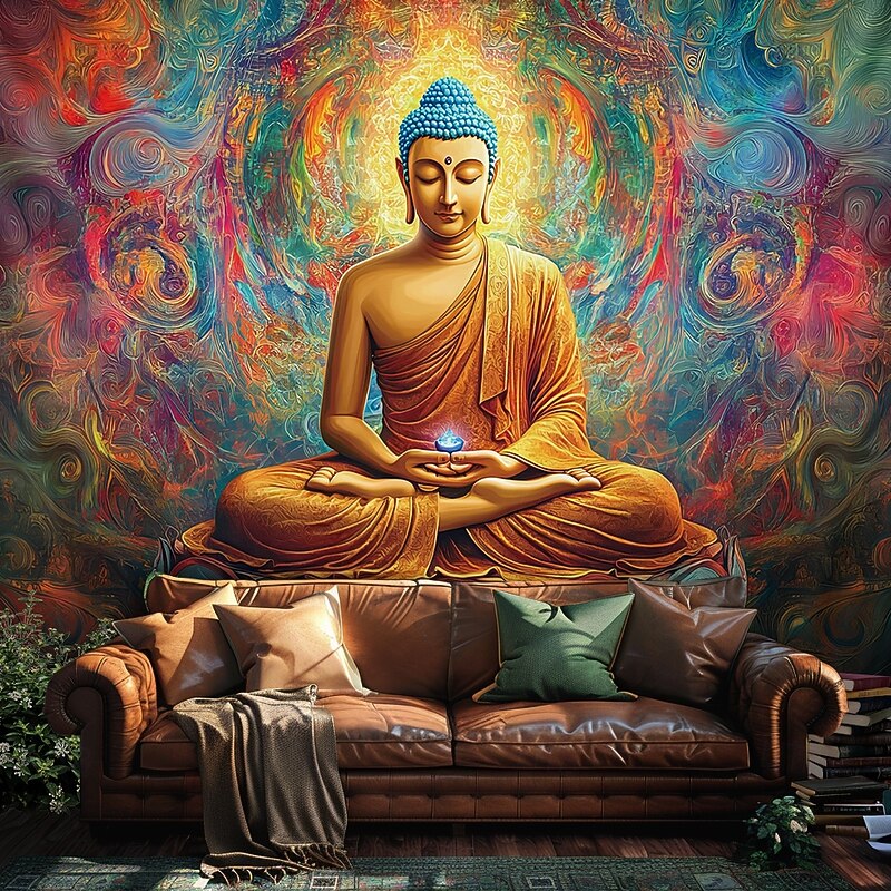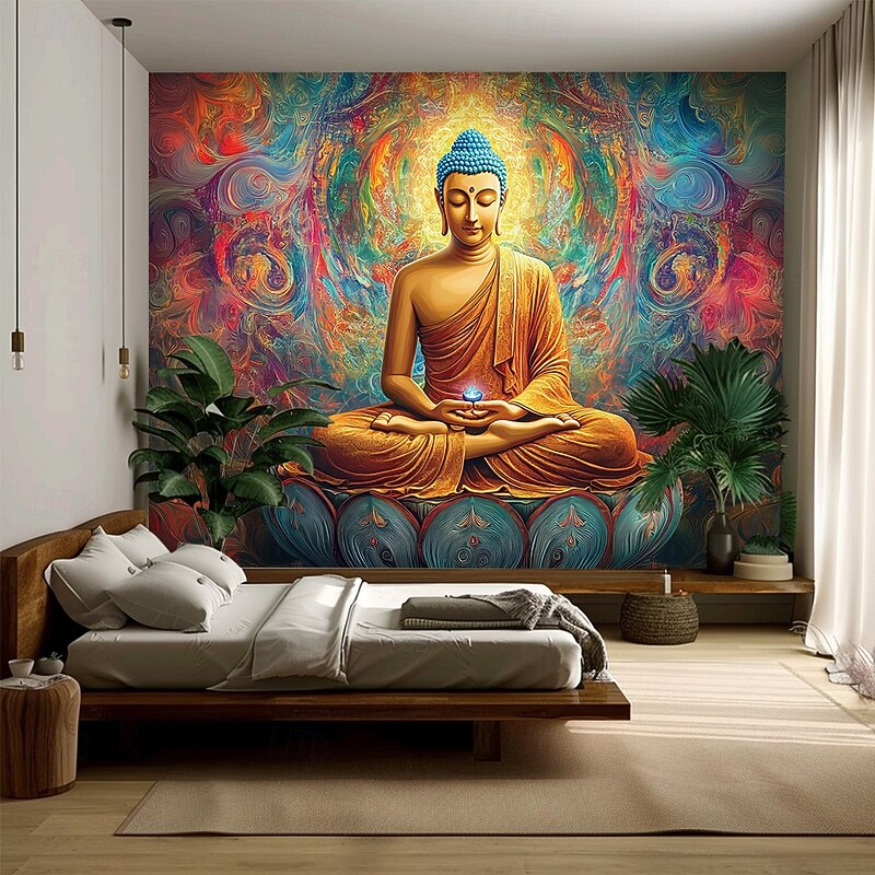 Mandala Bohemian Hanging Tapestry Buddha Wall Art Large Tapestry Mural Decor Photograph Backdrop Blanket Curtain Home Bedroom Living Room Decoration 11