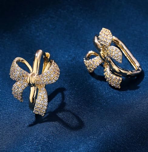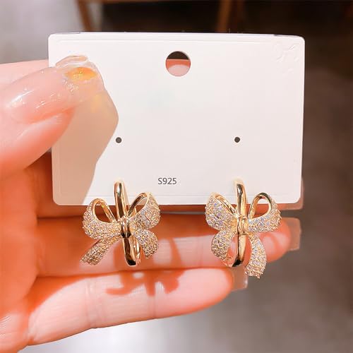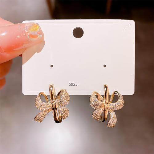 More information about Luxury Ribbon Bow Hoop Earrings 925 Sterling Silver Pin Cubic Zirconia Paved Crystal Bow Knot Geometric Square Huggie Dangle Drop Earring Fashion 14k Gold Plated Jewelry