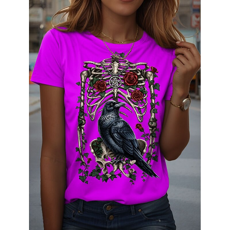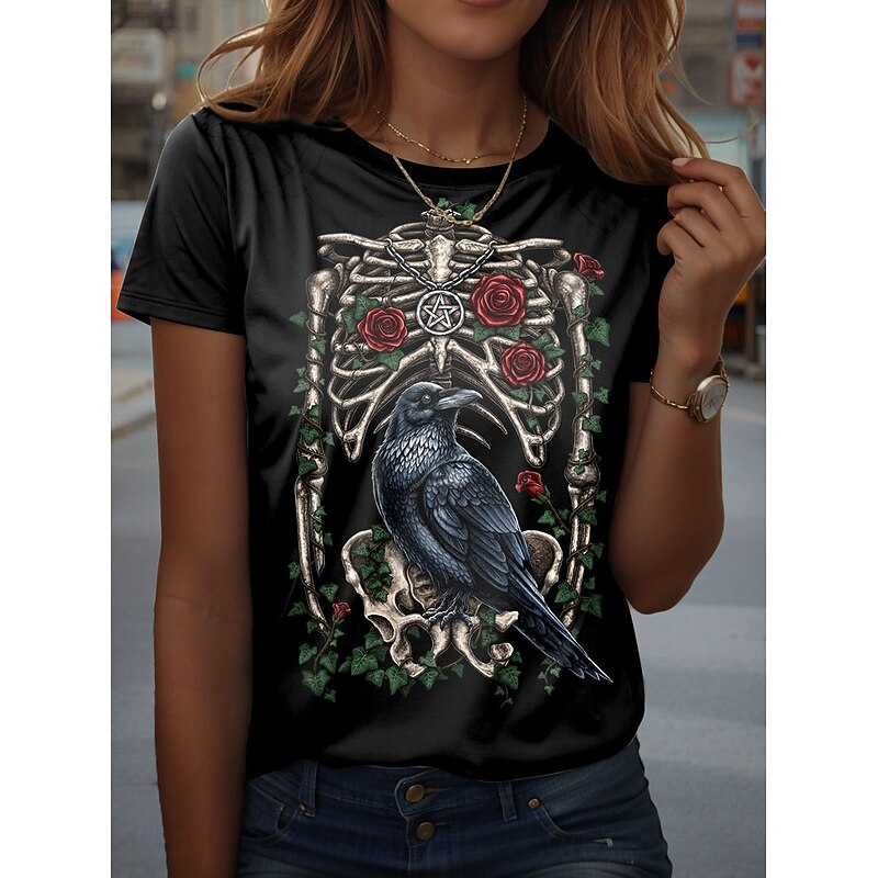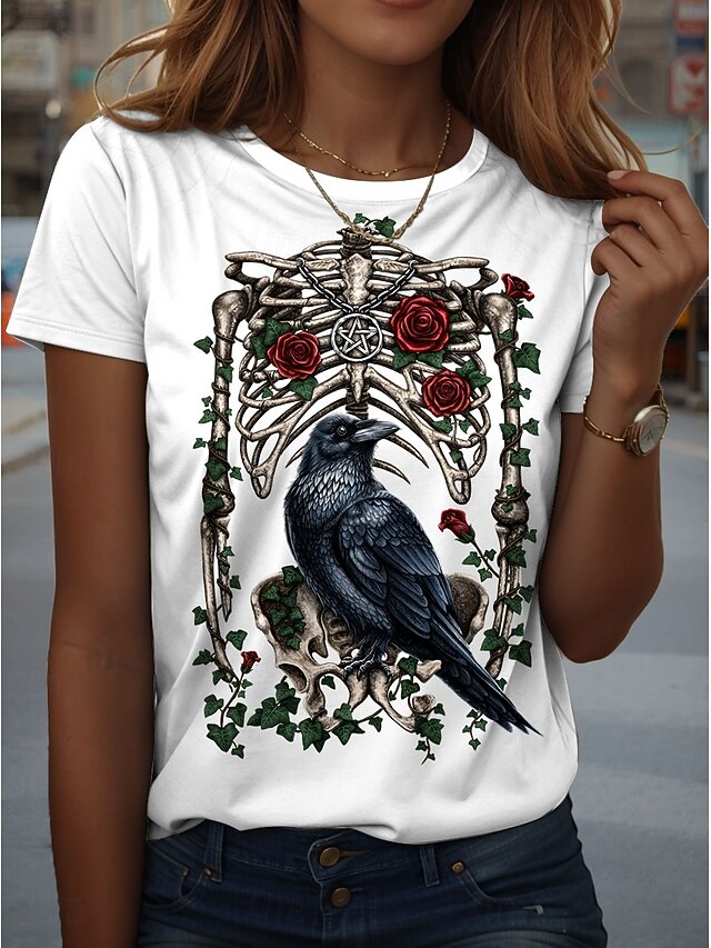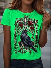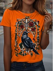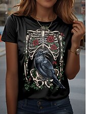 More information about Skeleton By Sarah Richter Halloween Women's T Shirt Skulls Graphic Vintage Stylish Classic Short Sleeve Long Sleeve Crew Neck Round Neck Regular Tops Daily Print