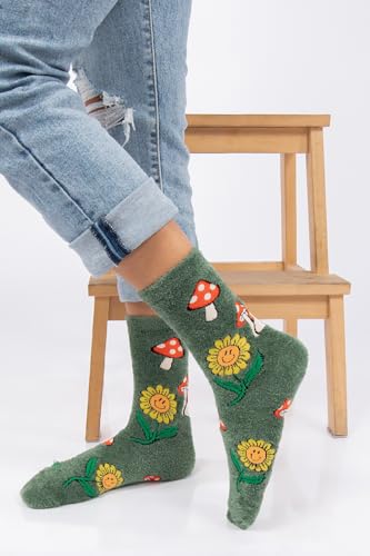 • [Colorful & rare Design] Our design captures the enchantment of the outdoors, bringing it to your feet with vibrant sunflower blooms and adorable mushroom motifs. Slip into these fuzzy socks to experience the comfort of a silky, warm hug for your feet while embracing the magic of nature's colors and charm.